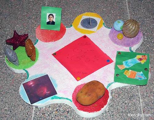 اما بچهها هم با خود هفت سين هايي آورده بودند. هفت سينهاي بچهها نگاه تازه و جالب آنها را به نجوم نشان ميداد. هفت سيني شبيه به ستاره و ماه، هفت سيني شبيه به سفينه، هفت سيني با يك سيب زميني به جاي سيارك و هفت سيني با عكس سعيد!