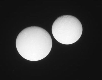 كاسيني با موفقيت كار تصوير برداري از چند قمر زحل را ادامه ميدهد. 3 شنبه هفته گذشته طبق برنامه پيش بيني شده زماني كه كاسيني به نزديكي يكي از اقمار زحل به نام Dione رسيد تصاويري زيبا از اين قمر تهيه و به زمين ارسال نمود. Dione قمر سفيد رنگ زحل با سطحي عجيب در عكس هاي كاسيني خود نمايي ميكند. در اين زمان قمر ديگر زحل Rhea نيز در كنار Dione قرار داشته و شباهت بسيار زياد اين دو قمر به هم در تصاوير ديدني است.